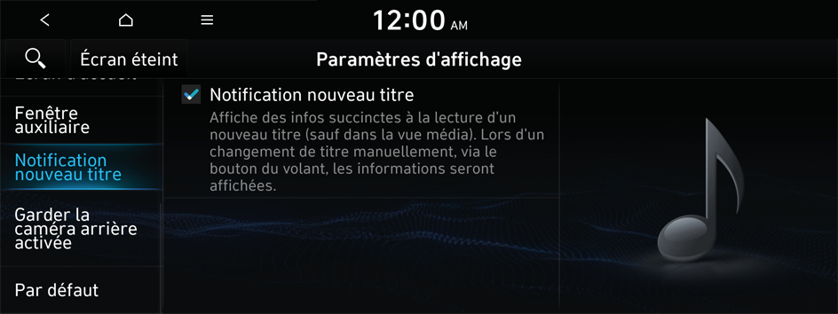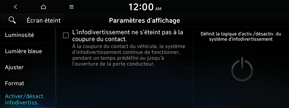 Vous pouvez régler le système pour que l'alimentation soit maintenue lorsque le véhicule est éteint.