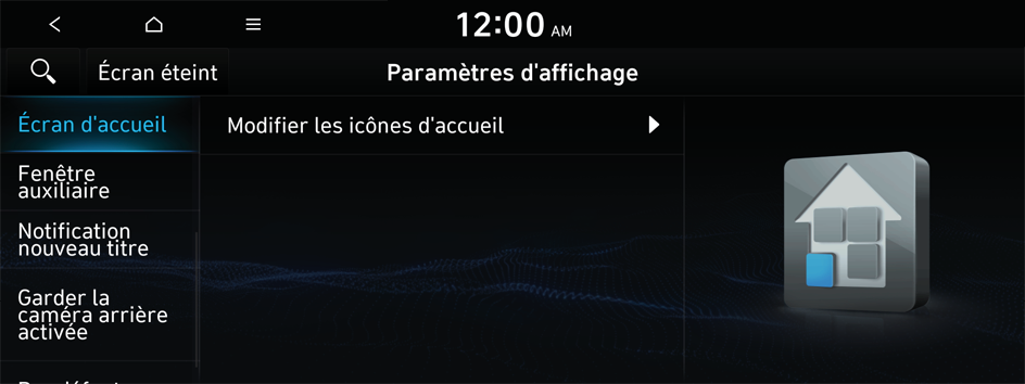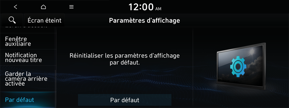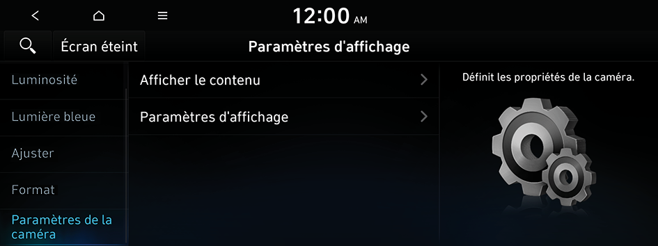 Vous pouvez modifier les paramètres d'affichage du système, tels que la luminosité de l'écran et les formats vidéo.