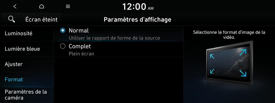 Vous pouvez régler le système pour qu'il affiche la vidéo dans le format d'origine ou en plein écran.