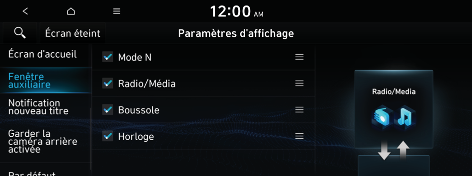 Vous pouvez indiquer les éléments à afficher sur la fenêtre auxiliaire.