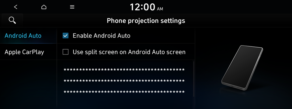 Using an approved USB cable provided by your smartphone manufacturer is recommended. Using unapproved USB cables may cause a phone projection error or a system malfunction.