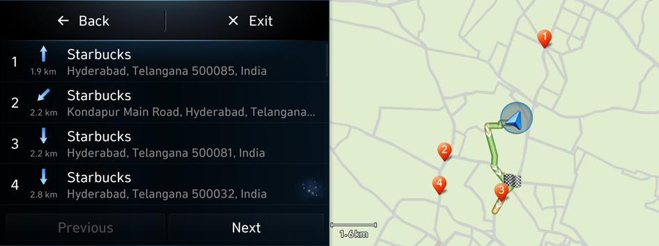 Pichle searches dikhao | You can select a destination from the list of destinations that have recently been searched for. Say the number of the location you want. |