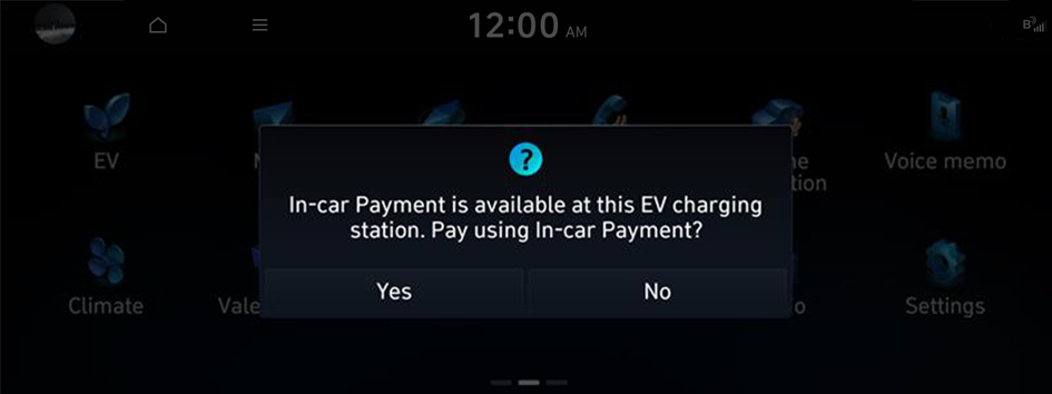▶ Manual and then scan the displayed QR code.The In-car Payment service is provided via a mobile communication network. Accordingly, the services may be restricted depending on your mobile communication network connection. Check the network signal strength icon (