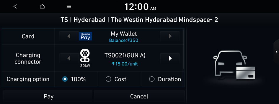 At a charging station affiliated with In-car Payment, top up your balance and pay the charging fee using the registered In-car Payment.