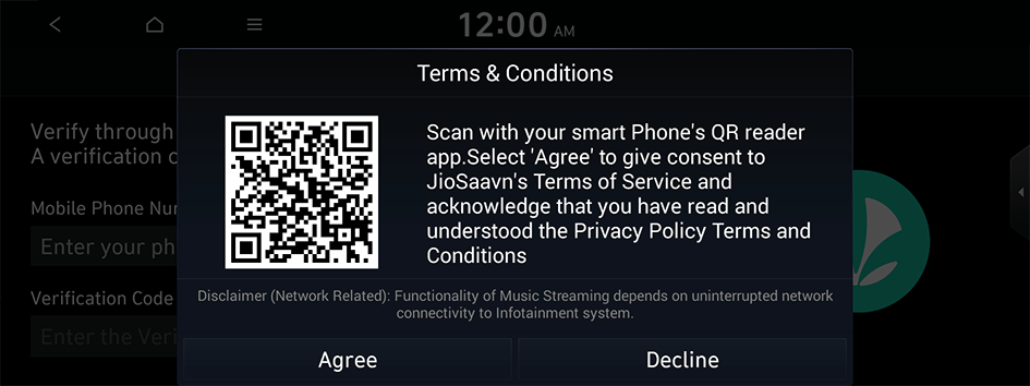 버튼을 누르세요.(사양 적용 시)차량에서 휴대폰 연결 없이 스트리밍으로 음악을 감상할 수 있습니다.