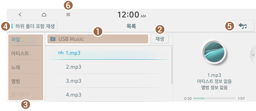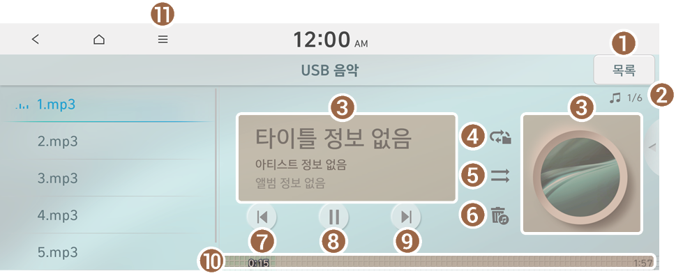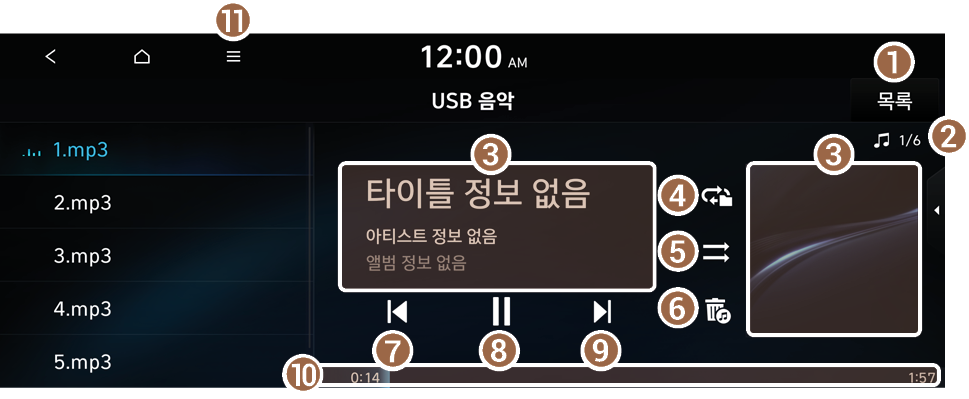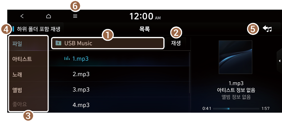 USB 음악 화면에서