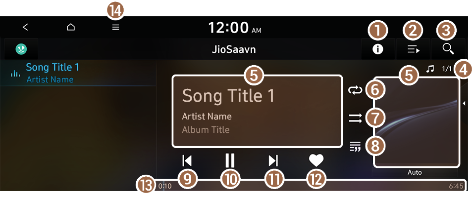 을 누르면 현재 재생 중인 곡을 즐겨찾기에 추가할 수 있습니다.블루투스 오디오 재생 중 음악을 잠시 멈추거나 정지된 음악을 다시 재생할 수 있습니다.