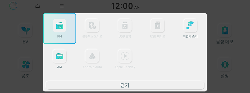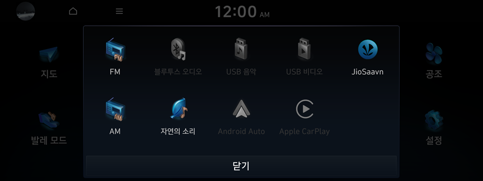 USB 모드를 사용해 USB 저장 장치나 MP3 플레이어 등 연결된 기기의 음악 또는 동영상 파일을 재생할 수 있습니다. 블루투스 기능을 지원하는 블루투스 기기를 연결해 블루투스 음악을 재생할 수 있습니다.