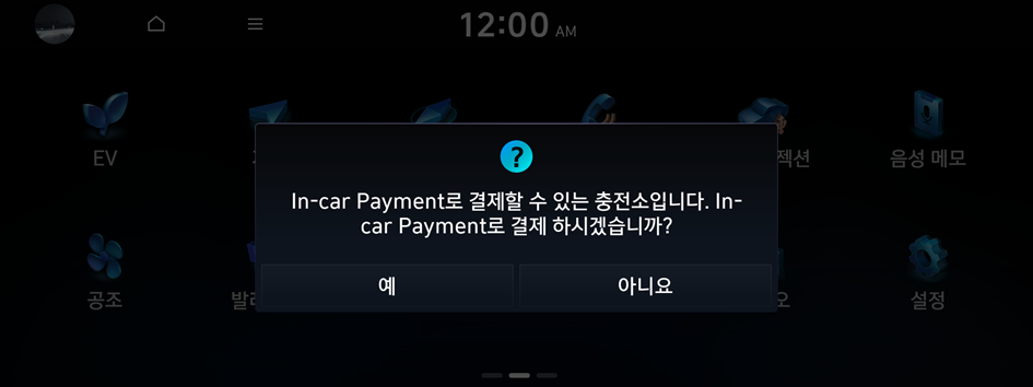 In-car Payment는 제휴 충전소에서 실물 카드 없이 편리하게 결제할 수 있는 간편 결제 서비스입니다. In-car Payment 서비스 가입 후 사용하세요.