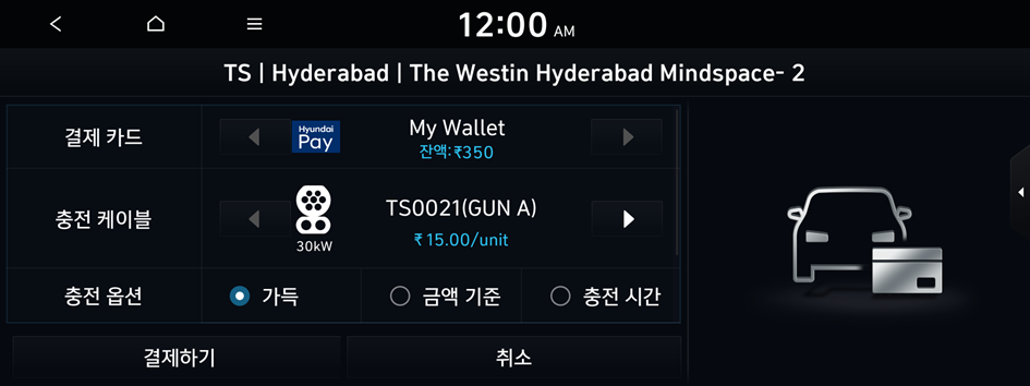 In-car Payment 제휴 충전소에서 등록된 In-car Payment에서 잔액 충전 후 요금을 결제할 수 있습니다.
