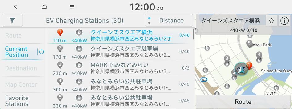 - From the charging station search results screen, add a charging station to Favorite Stations by pressing