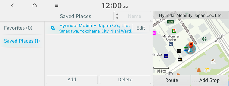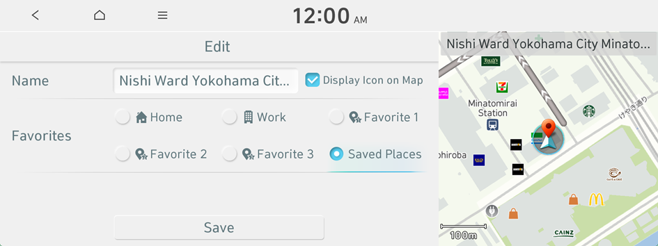 After registering the current location or frequently visited places, you can easily set any of them as a destination.