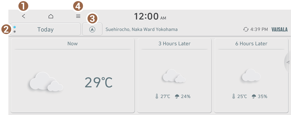 You can view weather information (e.g., temperature, humidity, precipitation and rainfall probability) for today, or the weather forecast.