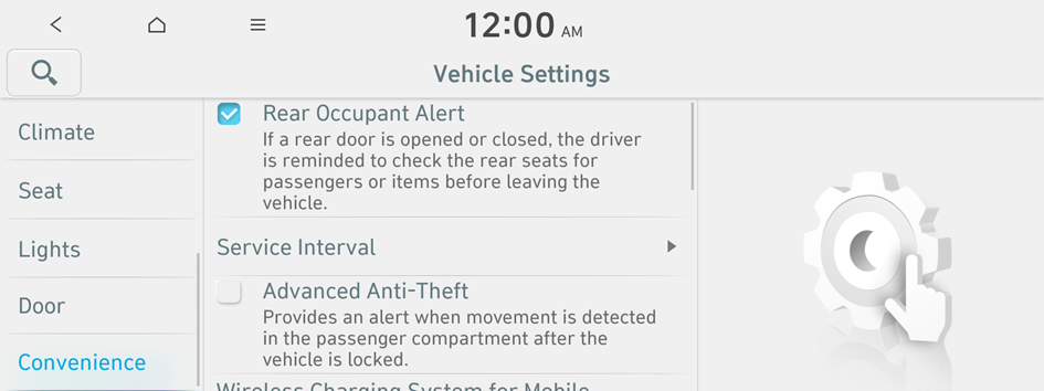 You can configure the features for convenience such as welcome sound and wireless charging.
