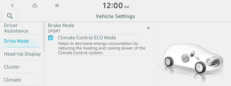 You can increase the fuel economy in this drive mode. You can change the settings for climate controls, regenerative braking energy level, and speed limits.