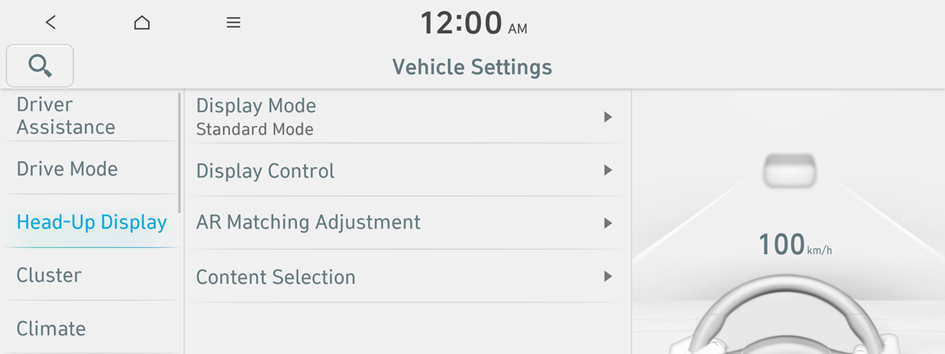 You can set to use the head-up display that displays information such as driving speed and road-related information while driving.
