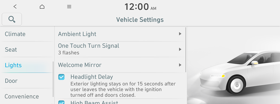 You can set to turn off the taillights and headlights in 15 seconds after turning off the vehicle to ensure visibility.