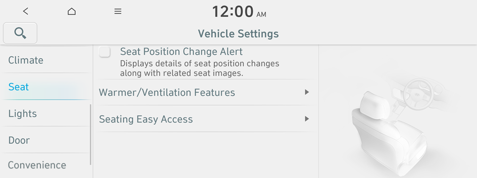 You can set the system to display a notification message along with the seat image on the screen when a seat position is changed.