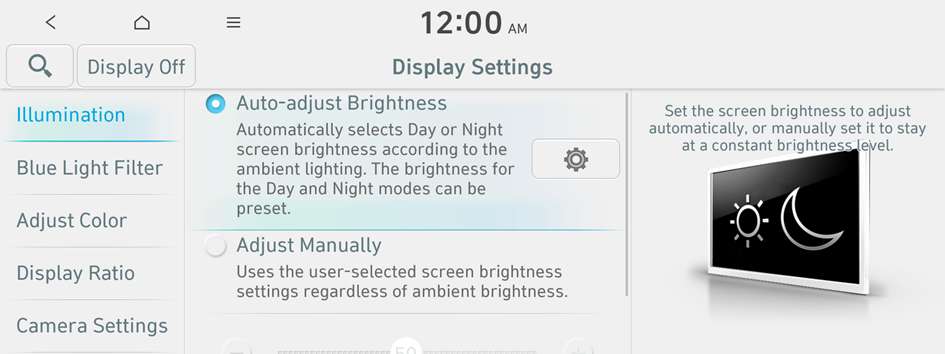 You can set the system brightness to be adjusted according to the ambient lighting conditions. Press