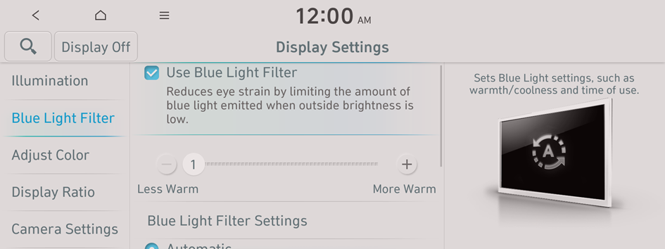 Set to activate blue light filtering automatically based on the ambient light or pick the time range manually.