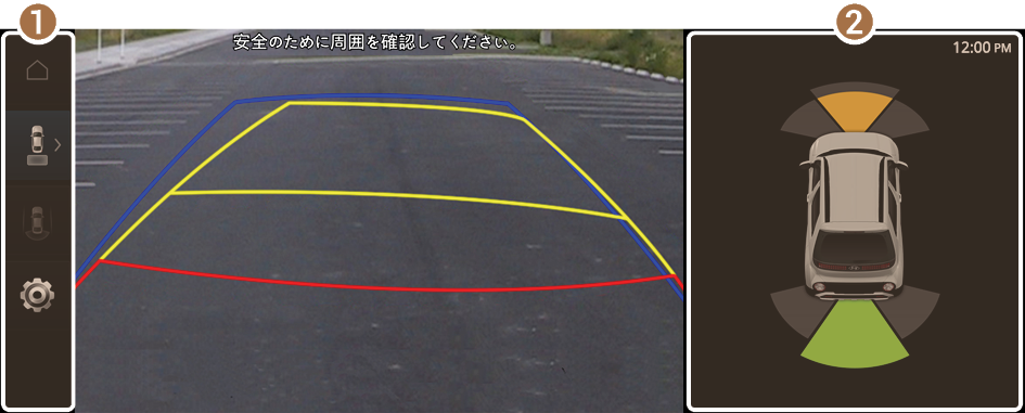画面をとおして目に映る距離は実際の距離とは異なることがあります。必ず自分の目で後方と左右の安全確認をしてください。