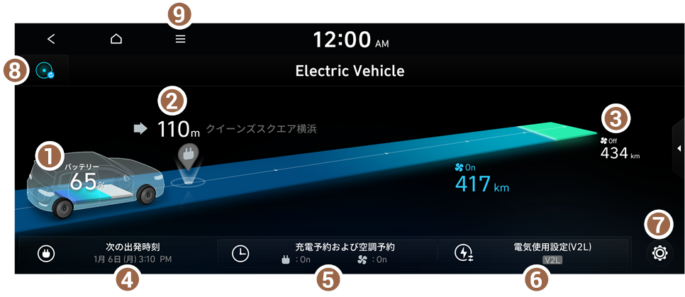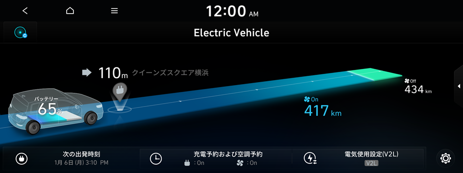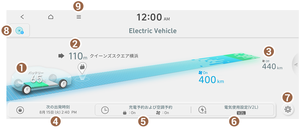 Electric Vehicle画面では、以下の機能や情報を提供しています。