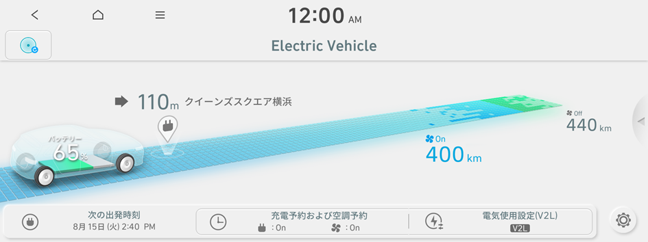 現在のバッテリー残量で走行可能な範囲を確認できます。
