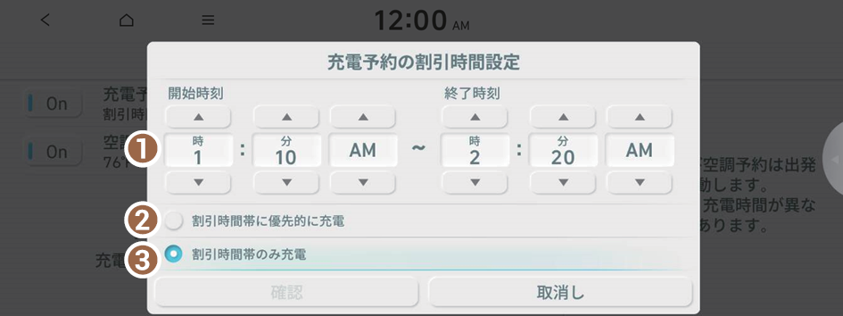 気温が低い冬など低温条件下において、バッテリー性能が低下する場合があります。走行性能と急速充電性能を維持するために、この機能の使用をおすすめします。この機能を使用する場合、バッテリーを消費するため、走行可能距離が短くなる場合があります。