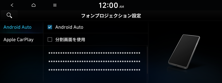 スマートフォンメーカーが提供する純正のUSBケーブルの使用を推奨します。純正ではないUSBケーブルを使用するとフォンプロジェクションのエラーやシステムの故障の原因となります。