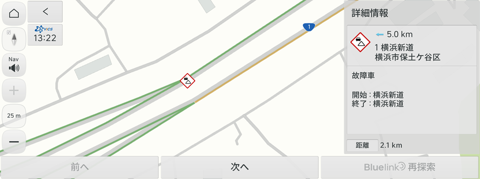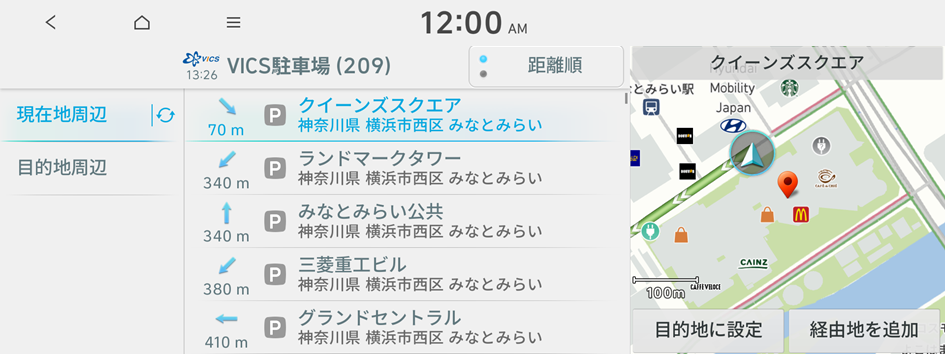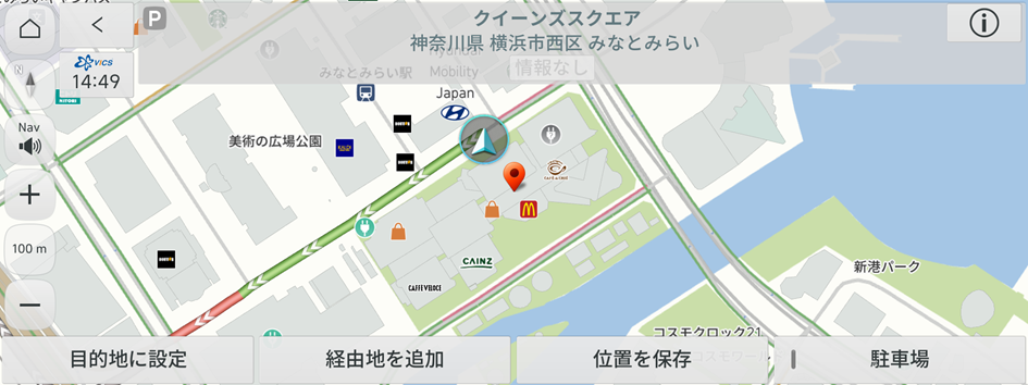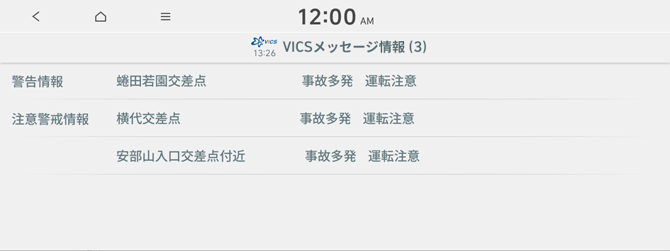 道路工事や交通事故などのリアルタイムな交通状況や駐車場の情報などのVICS情報を確認できます。
