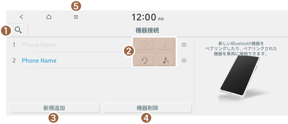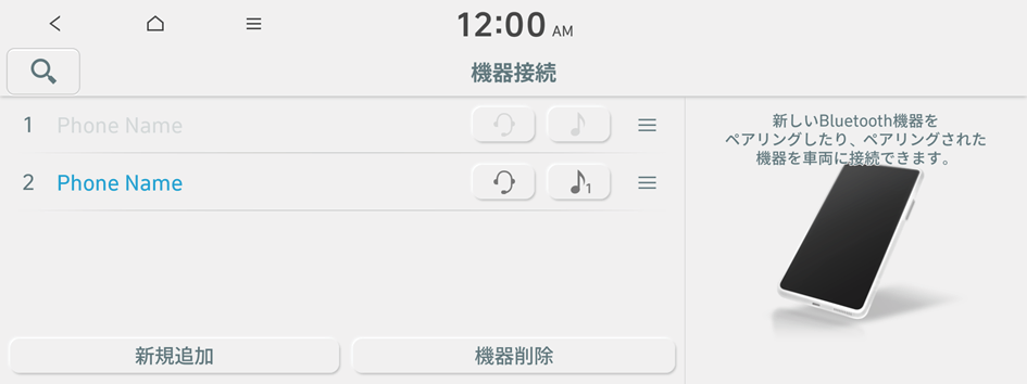 Bluetooth機器をシステムに接続するには、まず機器をシステムのBluetooth機器リストに登録します。