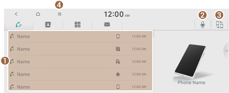 Bluetoothでスマートフォンとシステムを接続すると、スマートフォンの電話帳がシステムにダウンロードされるため、システム画面で通話したい相手の電話番号を探して電話を発信できます。車両にはマイクとスピーカーが内蔵されているため、スマートフォンを安全かつ簡単に使用できます。