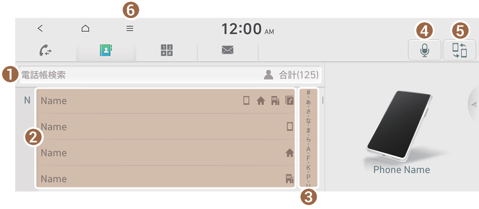 接続したスマートフォンの電話帳をシステム上で使用できます。