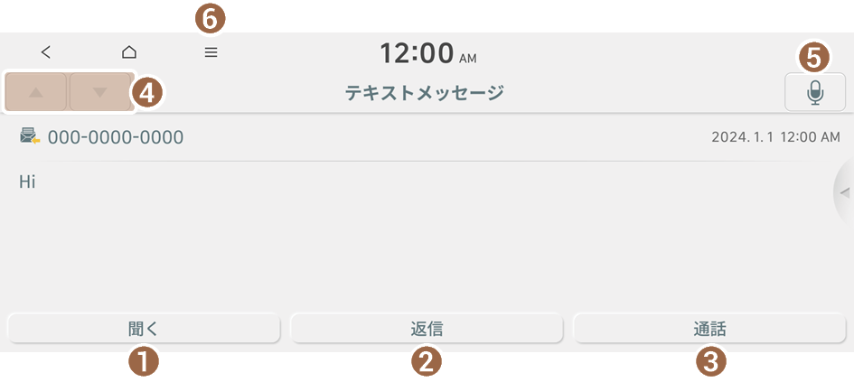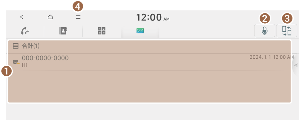 Bluetoothでスマートフォンとシステムを接続すると、受信したテキストメッセージをシステム画面で確認したり、テキストメッセージを音声に変換させて車両内蔵のスピーカーをとおして聞くことができます。また、システムに登録されているメッセージ定型文を使用してメッセージを返信することもできます。