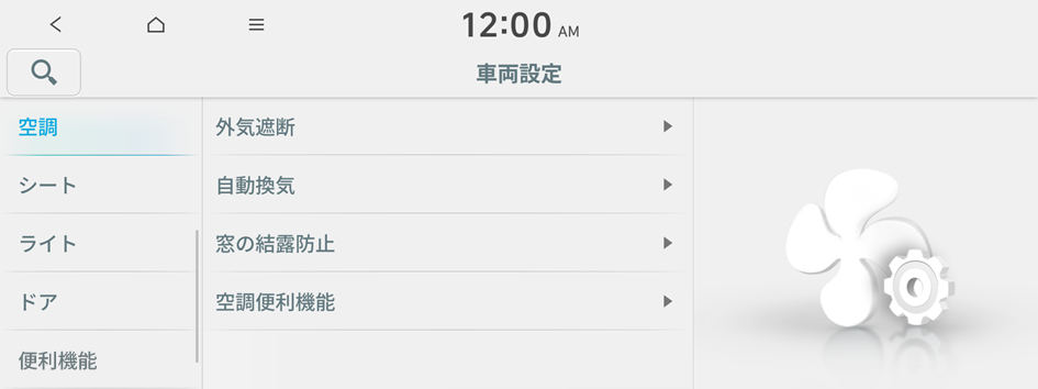 車室内での結露発生を防止し車室内の空気を快適に維持するために、自動換気機能を設定します。