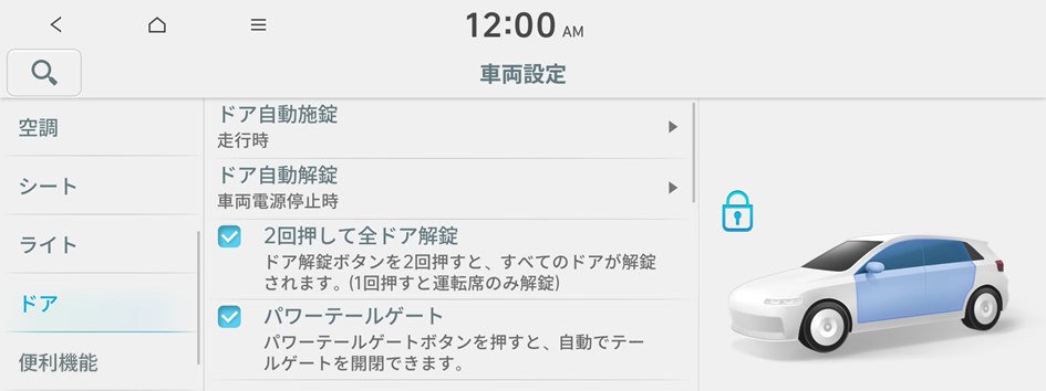 テールゲートとドアの使用環境を設定できます。