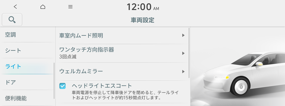 車両の照明の使用環境を設定できます。