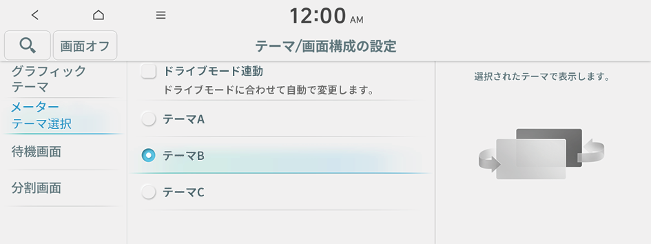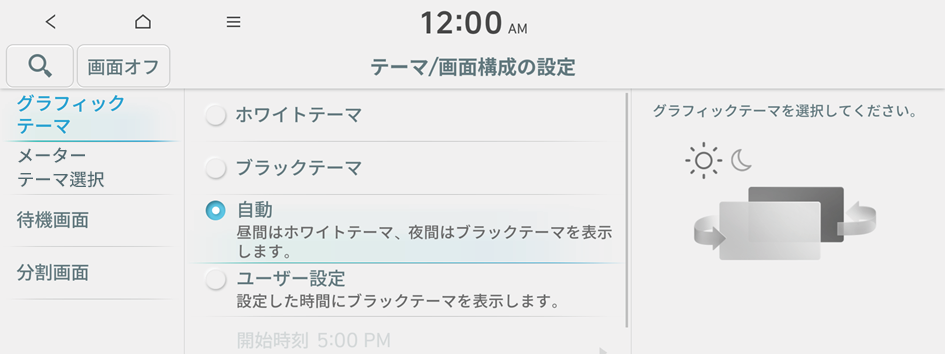 を押して、画面に表示するアナログ時計を選択します。画面またはシステムをオフにすると、デジタル時計と日付を表示します。