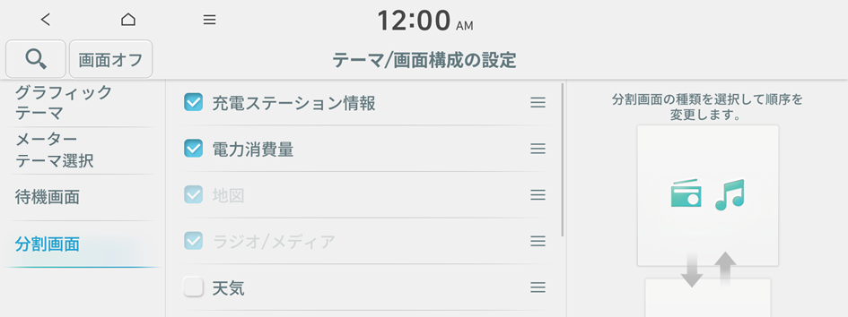 を押してキーワードを入力すると、設定項目を検索できます。音声でも設定項目を検索できます。設定したい画面のテーマを選択します。