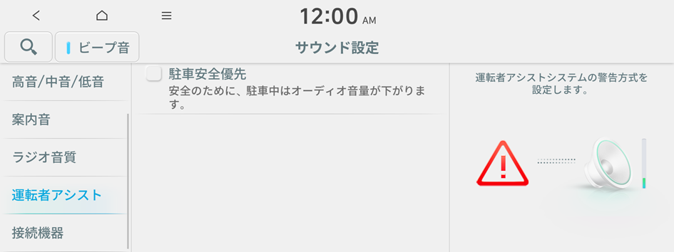 安全に走行するために、警告音が鳴った場合にオーディオ音量が下がります。