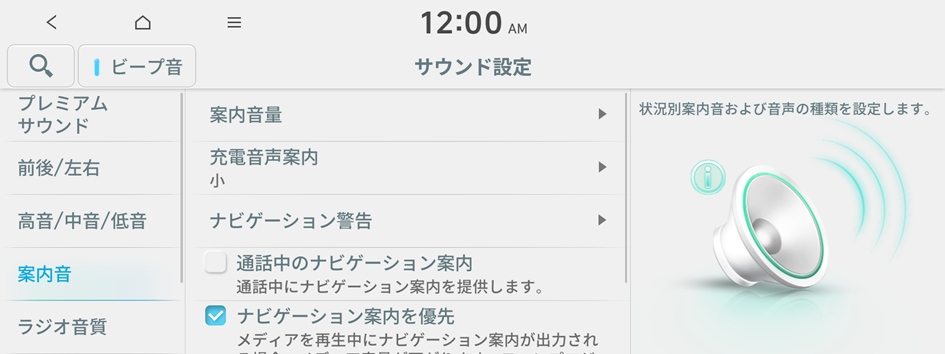 メディアを再生中にナビゲーション案内が出力される場合、メディア音量が下がります。フォンプロジェクションでメディアを作動時は、適用されない場合があります。