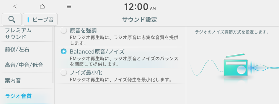 FMラジオ再生時に、原音とノイズのバランスを調節します。