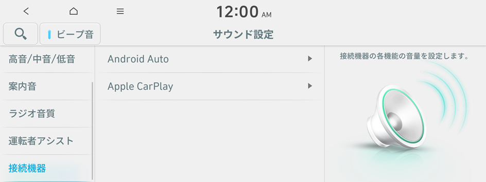 システムに接続中のAndroidスマートフォンの音量を機能に応じて調整できます。