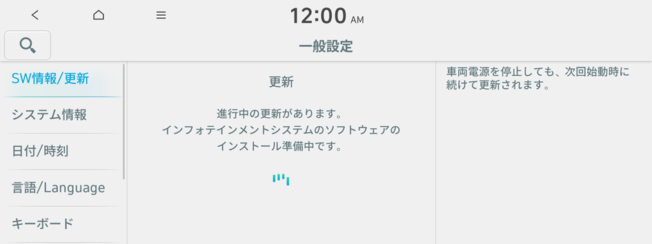 が表示されます。ダウンロードの進行状況を表示するには、全メニュー画面に移動し、設定 ▶ 一般 ▶ SW情報/更新を押します。