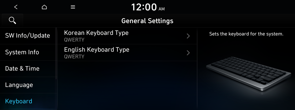 You can select the keyboard type to use when entering the Korean text.