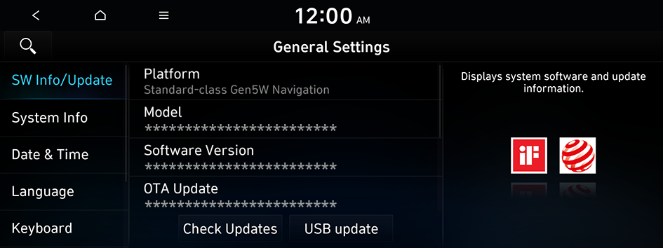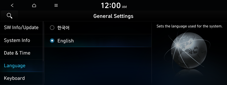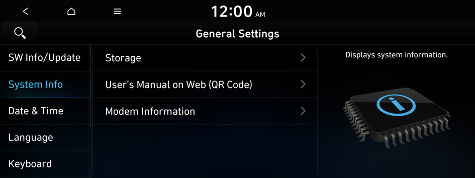 You can configure general settings for date, time, language, and the like. You can also check information of the system.