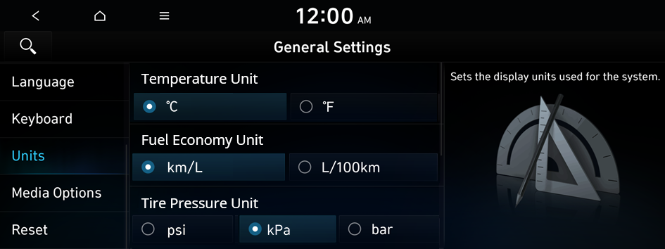 You can select a torque unit to display on the system screen.