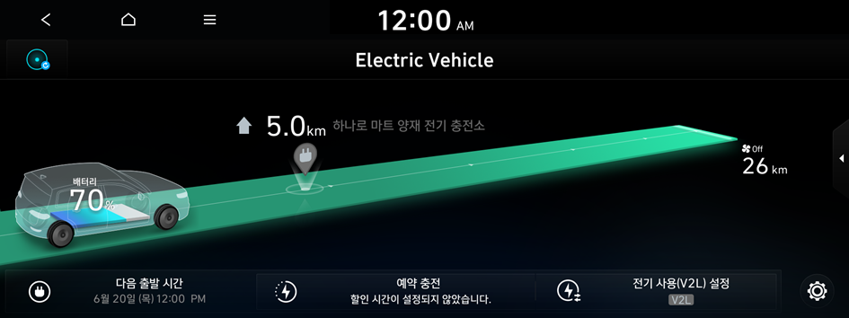 주행 가능 거리를 초과한 지역까지 목적지가 설정된 경우, 주행 가능 거리 내의 충전소에 연계된 길 안내 기능을 사용할 수 있습니다.