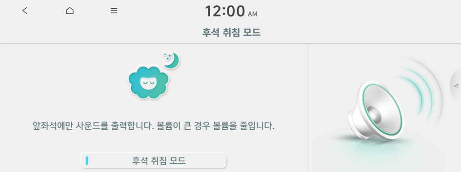 뒷좌석 탑승자가 취침과 휴식을 잘 취할 수 있도록 시스템의 음량을 조절할 수 있습니다.