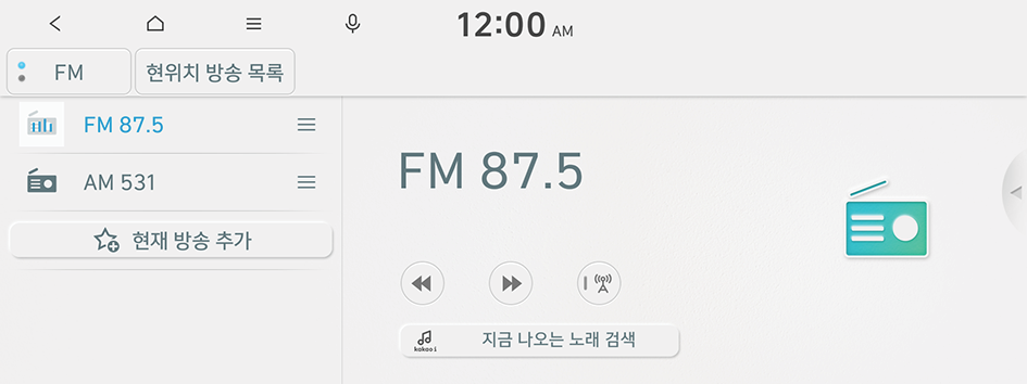 FM ▶ AM 순서로 라디오 모드가 변경됩니다.